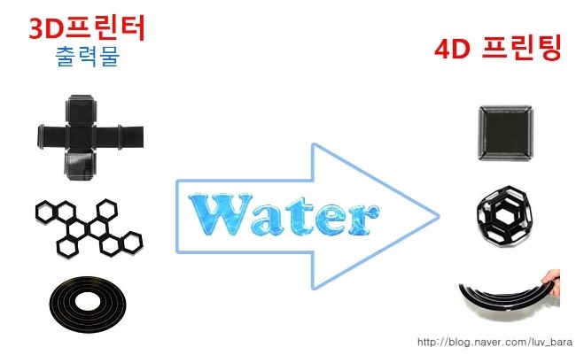 즉, 4D프린터를 간단하게 말해보자면' 물 ' 이라는 매개체를 통해 형태를 변화 시키는 것입니다.